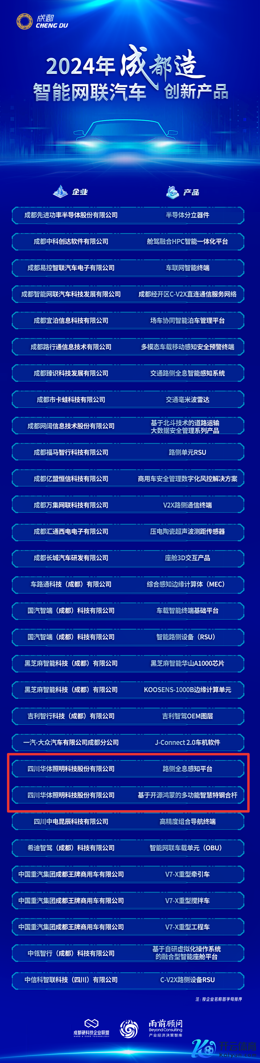 “成王人造”智能网联汽车立异居品30强kaiyun官方网站
